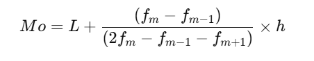 Ha az adatokat osztályokba (intervallumokba) rendezted, a módusz közelítő képlete a következő: